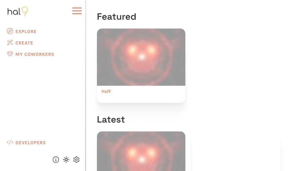 Hal9 Platform's user interface is a user-friendly web application. Its intuitive sidebar allows you to explore existing AIs, create new ones, share your work, and integrate AIs with tools like Slack, making it easy to bring your ideas to life and streamline communication workflows.
